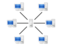 特定のサーバーがなく、各ノードがデータを保管している(分散台帳)(画像 Wikipedia)